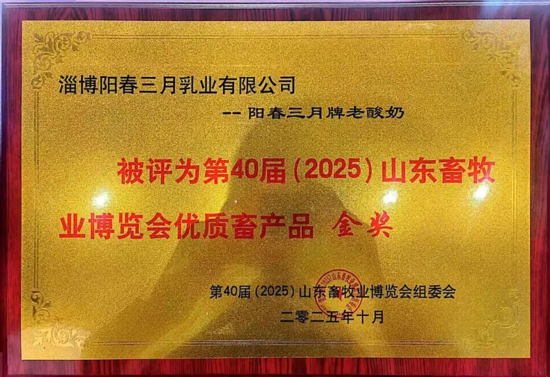 與此同時,在第40屆山東畜牧業博覽會上,陽春三月的老酸奶憑借卓越品質,贏得專家評委一致認可,榮獲“優質畜產品金獎”。這并非陽春三月羊奶首次在該博覽會獲獎——早在2024年,陽春三月純羊奶就曾榮獲同類金獎。此次再獲殊榮,不僅是對產品的再次肯定,更是對“淄博農品”品牌實力的認可。